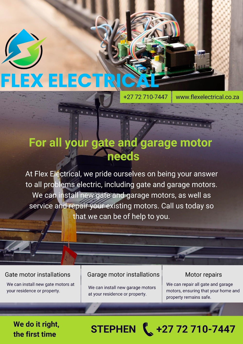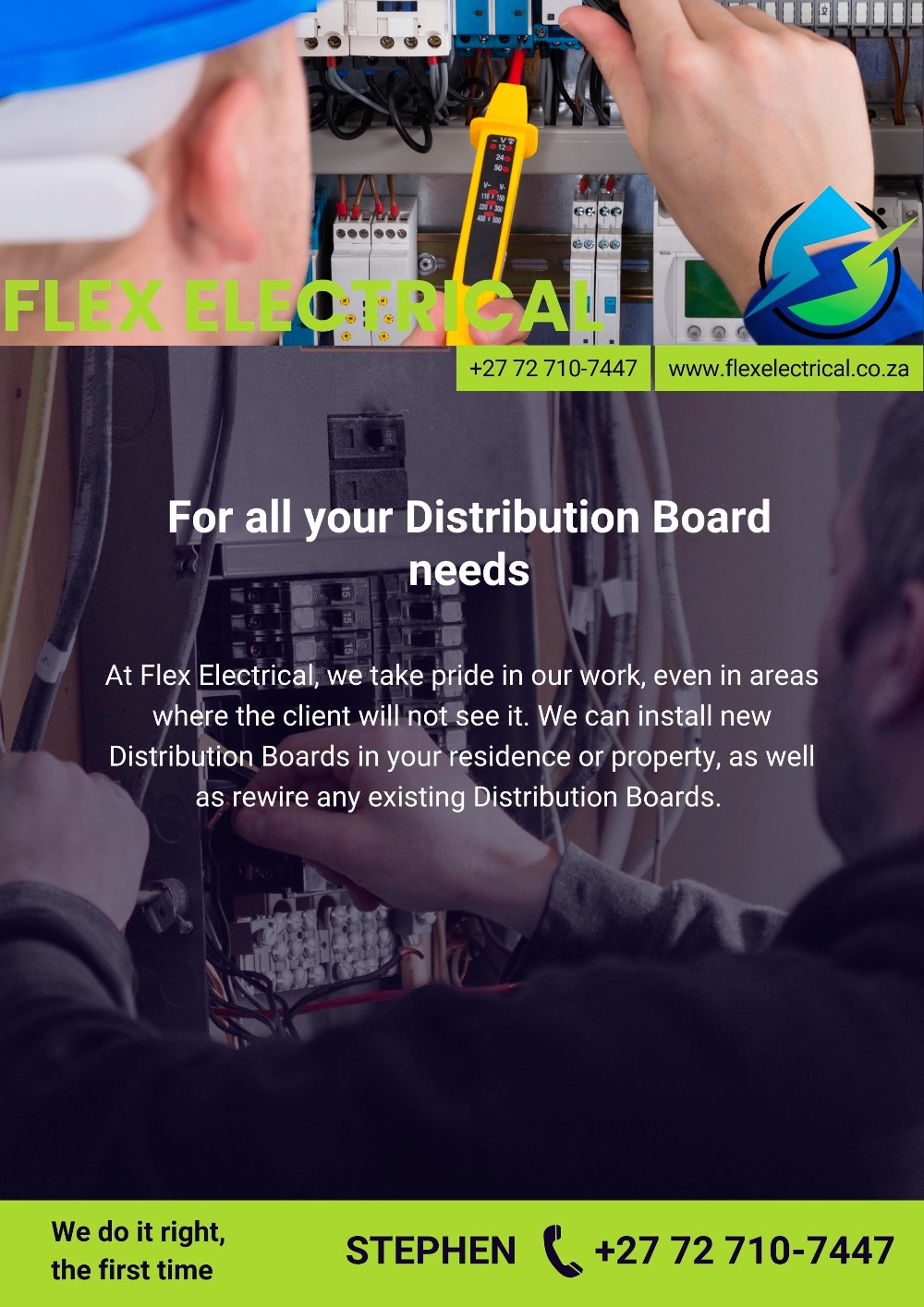 Flex Electrical is rolling out new branches across the country. Soon there will be a Flex Electrical presence in Brits, Rustenburg, Krugersdorp, Bloemfontein, Mossel Bay, and Cape Town. Watch our website for more details: www.flexelectrical.co.za, or contact us on info@flexelectrical.co.za. Phone or WhatsApp us on 072 710-7447.